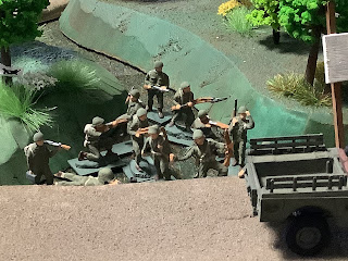 Alla centro dello schieramento tedesco due squadre si fanno avanti, quella di sinistra cade sotto il fuoco dei fanti scesi dai Dodge, gli americani infliggono 3 perdite ma ne subiscono 6! I tedeschi, che sono ben supportati superano il test di disciplina, gli Yankee no. Rompono il contatto e ripiegano.
