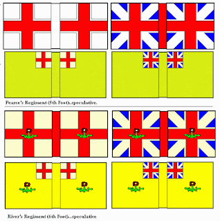In cases where a regiment's colors change during the period of our concern, I have included both colors and separated these from the other colors on the plate with a black line and in the list below the regiments names are separated by a slash '/'. In the interests of brevity, and because the primary function of this site is to provide wargamers with fairly accurate flags for their miniatures and not hard historical data, I have listed only the name of the regiments as it was in 1701 (except where the name change also involves a colors change as noted above). In other words, if the Colonel changed but the Regimental name stayed the same, it may not be mentioned unless the Colors also changed.